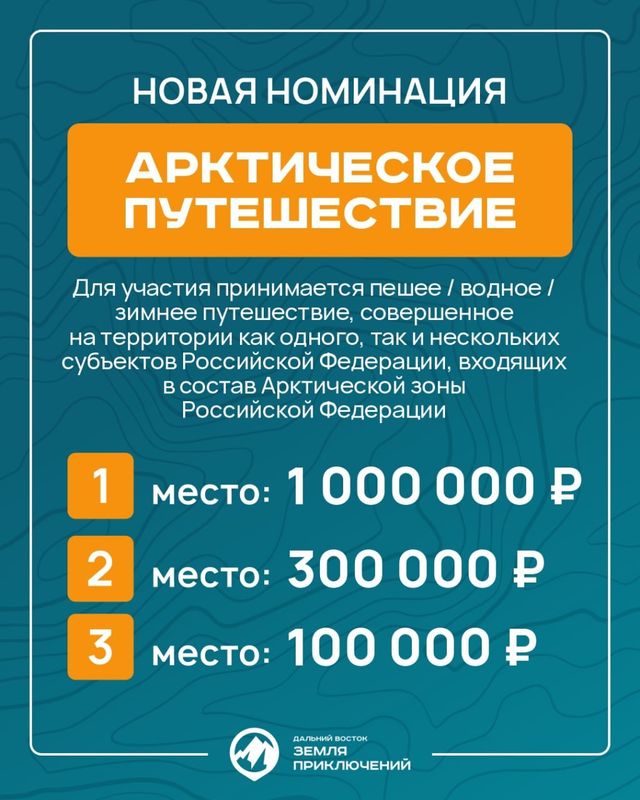Чтобы принять участие в конкурсе, необходимо снять короткометражный фильм длительностью до 8 минут о своем путешествии на Дальний Восток или в Арктику. Главный приз за лучшее видео составляет 3 миллиона рублей.
